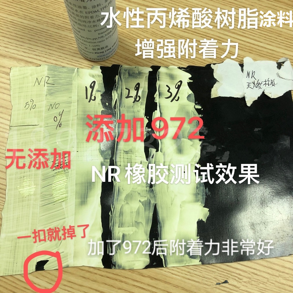 CNHYBOND-972底涂劑是由丙烯酸聚合而成的水性高分子聚合物, 加入小量972的水性油漆、涂料、膠水,油墨極易與底材表面形成交聯網狀結構,從而賦予水性油漆、涂料、涂料、膠水、油墨優異的附著力,柔韌度和抗撕裂,龍其是水性涂料、油墨、墨水、熱轉印、印花、UV光油等;